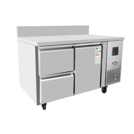 TABLE POSITIVE GN1/1 1 PORTE + 2 TIROIRS 1/2 A GAUCHE DOSSERET HAUTEUR 100mm